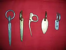 Les plus petits pitons sont appelés knifeblades ou lames ; les pitons moyens angles ; les plus gros bongs. Les pitons minuscules sont appelés RURP (acronyme anglais pour realized ultimate reality piton) ; un RURP est à peu près de la taille d'un timbre postal et on le considère généralement comme étant une protection aléatoire. Les RURP sont utilisés uniquement pour l'escalade artificielle.