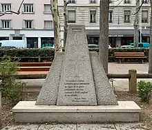 Une stèle a été déposée au moment de la reconstruction de la place dans les années 1980 :