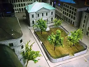 « En 1836, le gouvernement du Bas-Canada exproprie l'ancienne place du marché et fait construire la maison de la Douane au centre. La partie sud de la place est réaménagée avec arbres, clôtures de fer forgé et fontaine : elle est baptisée square de la Douane. C'est en 1892, à l'occasion du 250e anniversaire de la fondation de Montréal, qu'elle prend le nom de place Royale[1]. »