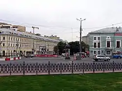La partie Sud-Est de la place jusqu'au milieu du XIXe siècle était occupée par des jardins potagers situés à proximité du monastère de la Nativité-de-la-Mère-de-Dieu (dit simplement monastère de la Nativité). En 1865, un immeuble à trois étages a été construit ici, dans lequel des appartements bon marché étaient loués notamment à des étudiants. L'immeuble a été reconstruit plusieurs fois, et au début du XXIe siècle, il a été démoli. Maintenant, un ensemble immobilier a été construit ici à partir de zéro, combinant un style russe pseudo-ancien avec le style Art nouveau, appelé « Neglinnaya Plaza »[4].
