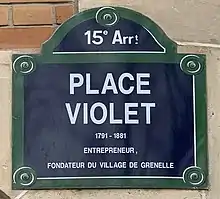 La place Violet est située à l’intersection entre la rue Violet et la rue des Entrepreneurs.
