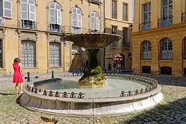En 1862, une fontaine est érigée au centre de la place[1]. Puis en 1912, une ornementation métallique, réalisée par les élèves de l'école des arts et métiers d’Aix-en-Provence y a été ajoutée[2].