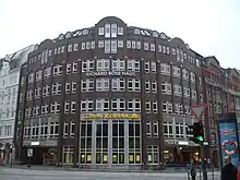 La Commerzbank (Orientation nord-est) - Le troisième angle arrondi (occupé par une filiale de la Commerzbank désormais fermée) est créé en 1985/1986 pour rappeler les deux grands complexes en briques opposés.
