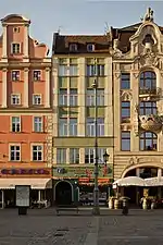 En 1931, sur le côté ouest de la place du marché, aux immeubles 9 à 11, l'architecte Heinrich Rump a conçu un immeuble de bureaux moderniste et controversé (aujourd'hui la Santander Bank Polska, ancien siège du MPK Wrocław)[1].