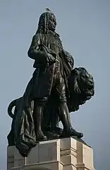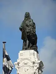 La place fait hommage à Sebastião José de Carvalho e Melo, marquis de Pombal, homme d'État, qui conduisit le pays vers la période des Lumières, ayant gouverné entre 1750 et 1777. Sa statue est en haut de la colonne, la main posée sur un lion, symbole de pouvoir, les yeux tournés vers le quartier de Baixa, au centre de la ville, que Pombal fit reconstruire après le tremblement de terre de 1755.