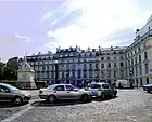 - No 7 bis : hôtel de Waresquiel (anciennement hôtel d’Herbouville) ; construit en 1787 pour Claude-Louis de Saisseval, l’hôtel change plusieurs fois de propriétaire pendant la Révolution puis est racheté en 1811 par Charles-Joseph Fortuné, marquis d’Herbouville et, quelques décennies plus tard, par Maurice-Paul comte de Waresquiel, dont le chiffre, autrefois doré, orne les balcons du troisième étage. En 1868, l’empereur d’Autriche, François-Joseph Ier, y est reçu dans un boudoir au deuxième étage (encore visible en 1920)[16]. En 1925, l’immeuble abrite le siège du journal hebdomadaire L'Opinion, publié sous la direction de Maurice Colrat[20]. En 1937, on y trouve le siège du Comité français du Rassemblement universel pour la paix[21]. Entre les deux guerres, la grand-mère de l’historien Emmanuel de Waresquiel y tient un salon[22]. L'immeuble est l’objet de travaux de reconstruction en 1946-1951 par l’architecte Auguste Perret, le commanditaire étant le comte Arnold de Waresquiel[23]. À partir de 1975, l’immeuble devient le siège du Parti socialiste, dès lors surnommé au sein du parti le « 7 bis ». Le futur président de la République François Mitterrand y occupe, occasionnellement, un bureau au 5e et dernier étage[24]. En 1985, le PS revend l’immeuble pour 25 millions de francs. Son nouveau propriétaire en fait de même quelque temps plus tard pour 67 millions de francs. En 1990, l’immeuble est racheté par un marchand de biens pour plus de 100 millions de francs. Ce dernier, estimant alors avoir été spolié, intente diverses actions en justice contre les anciens propriétaires de l’immeuble, dont le PS[25]. Le , sans rapport avec les faits précédents, six personnes sont arrêtées par la police devant le bâtiment alors qu’elles sont en train de charger dans deux voitures des sacs de faux dinars du Bahreïn pour un montant de 7,5 millions d’euros[26]. En , plusieurs responsables nationaux du parti, à la recherche d’un QG de campagne pour Lionel Jospin, alors probable candidat à l’élection présidentielle de 2002, visitent les lieux mais l’affaire ne se conclut pas[25]. Comme pour l’ensemble des bâtiments de la place, façades et toitures sont