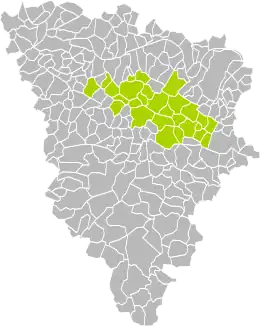 - au nord du ru de Gally : Bailly, Noisy-le-Roi, Saint-Nom-la-Bretèche, Feucherolles, Davron, Crespières, Les Alluets-le-Roi, Herbeville, Mareil-sur-Mauldre,