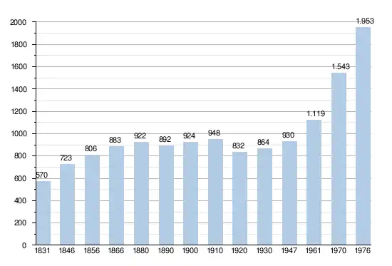 - Sources : INS, Rem. : 1831 jusqu'en 1970 = recensements, 1976 = nombre d'habitants au 31 décembre.