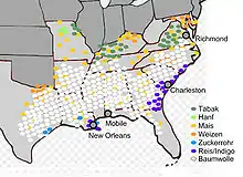 Avec la fin de l'encomendia remplacée par le repartimiento de indios (es) (système de corvées) et le déclin de la population amérindienne, de nombreuses haciendas, plus grandes que les estancias, se tournèrent vers les plantations notamment sucre, indigo et café. Cependant dans la Vice-royauté du Pérou, l'antique système inca de la mit'a perdura préservant la petite propriété amérindienne et entravant partiellement le développement des grandes plantations. En Nouvelle-Grenade (Colombie, Panama, Venezuela actuels), une partie des exploitations étaient aussi beaucoup plus petites avec des paysans métis et des métayers[46], ce qui fut peut-être un atoût pour les plantations de cacao[47]. Il en alla tout autrement dans le sud du Mexique, au Guatemala, aux Philippines et dans les Grandes Antilles (Vice-Royauté de Nouvelle-Espagne) où une organisation proche du système brésilien prévalut. L'hacienda était dirigée par le hacendero, véritable seigneur. Ces haciendas perdurèrent après la fin de l'esclavage, sauf lorsqu'il y eut des réformes agraires radicales, notamment au Mexique.