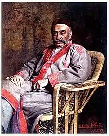 Kurdschi Banian, mandataire des courtiers français à Mokha portant une médaille à l'effigie de Louis XVI, Yemen, vers 1790–1800.