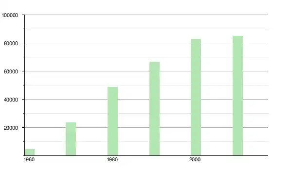 | 1970 | 23 523 | ▲ +392,94 % | |