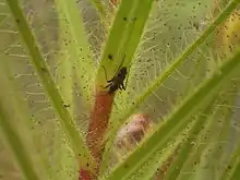 D'autres plantes considérées comme protocarnivores ont des trichomes collants à leur surface, comme le pédoncule floral et le bourgeon des Stylidium et Plumbago[13], la bractées de la Passiflora foetida, et les feuilles du Plumbago. Les trichomes de Stylidium, qui apparaissent sous la fleur, sont connus depuis des siècles pour leur capacité à capturer et à tuer les petits insectes, mais l'objectif de cette opération reste ambigu. En , Dr Douglas Darnowski a publié un article sur la digestion active des protéines quand elles entrent en contact avec le trichome d'une espèce de Stylidium issu d'une culture de tissu végétal en condition aseptiques, prouvant que la plante, et non les microbes à sa surface, produisait des protéases[14]. Darnowski conclut dans cet article que les espèces du genre Stylidium peuvent être qualifiées de carnivores, bien qu'il reste à démontrer l'avantage compétitif que cette adaptation implique.