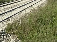 Communauté rudérale d'Inule visqueuse le long d'une voie ferrée en Israël. Le ballast accueille parfois une flore originale constituée de plantes pionnières, thermophiles et xérophiles. Le passage des trains favorise la dispersion des graines par les vents (phénomène d'anémochorie et d'agochorie), faisant migrer rapidement les plantes d'un endroit à l'autre.