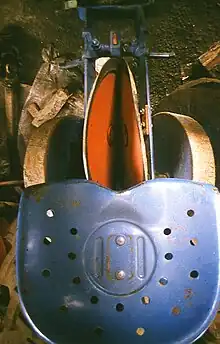 Planteuse à pommes de terre semi-automatique (employant 2 personnes derrière un tracteur).
