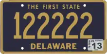Delaware | 2008 | « The First State » | La plaque n'est composée que de chiffres. |