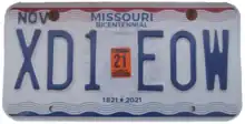 Missouri | 15/10/2018 | « Bicentennial » en haut de la plaque « 1821 * 2021 » au bas de la plaque |