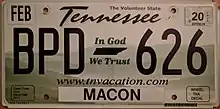 Tennessee | 01/07/2017 | « In Gof We Trust », « www.tnvacation.com » | Un autocollant avec le comté d'émission est ajouté en bas de la plaque |