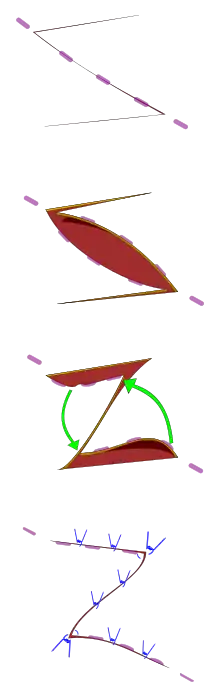 En théorie : plus l'angle est grand, plus la cicatrice s'allongera. Le trait central du “Z” représente la cicatrice à enlever ou la bride à corriger. Après l'incision, la traction cutanée va placer spontanément les deux lambeaux cutanés dans leur nouvelle position. Ils se croisent par un mouvement de rotation. En fin d'intervention, les lambeaux cutanés initiaux se sont croisés et donnent la forme d'un "Z" inversé. La peau est relâchée dans le sens de l'ancienne cicatrice[2].