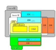 - la Java Enterprise Edition (ou Java EE, et auparavant J2EE) destinée aux serveurs Web, sur-ensemble de Java SE assorti d'un SDK complémentaire;