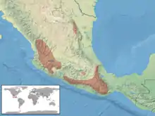 Cette espèce est endémique du Mexique. Elle se rencontre au Veracruz, au Puebla, en Oaxaca, au Guerrero, au Michoacán, au Jalisco et au Durango[1].