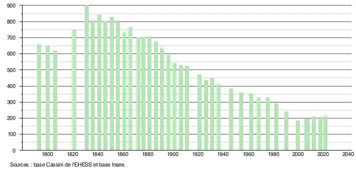 (Sources : Ldh/EHESS/Cassini jusqu'en 1999[21] puis Insee à partir de 2006[22].)