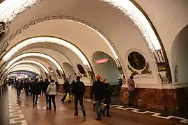Elle dispose au nord, en surface, d'un pavillon d'accès sur la place place Vosstaniïa, avec une billetterie et une relation avec le quai situé à 58 mètres de profondeur par un tunnel en pente équipé de trois escaliers mécaniques. Au sud, également en surface, un hall d'accès est situé dans la gare de Moscou et une relation piétonne souterraine directe est aménagée avec le quai de la station Maïakovskaïa de la ligne 3 du métro[2].