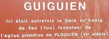 Saint Jaoua est considéré comme le fondateur (peut-être post mortem) du noyau primitif de la paroisse aussi dénommée Guicuyon devenu Guicyen puis Ployen aux XVe siècle, XVIe siècle et XVIIe siècle avant d'être dénommé au XVIIIe siècle Plouyen et d'être écrit Plouvien à partir de 1790[37].