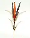 - Les plumes décoratives qui servaient à réaliser des fleurs artificielles provenaient essentiellement des colibris et des perroquets, mais parfois aussi de plumes de poule et pintade teintées;