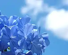 - Plumbago auriculata ou Plumbago capensis ou Plumbago grandiflora, la dentelaire du Cap.