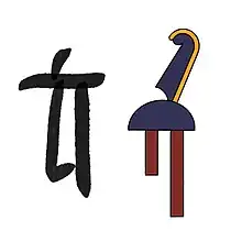 Plume sur pavois (hiéroglyphe égyptien R14)