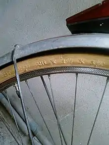 Sur la face externe de la plupart des pneus de vélo figurent, outre le nom du fabricant et la pression de gonflage, une série de chiffres indiquant les mensurations du pneu.