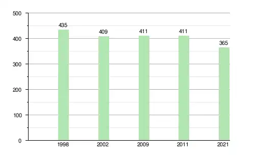En 2021, le village de Podobowice comptait 365 habitants, en diminution de −16,09 % par rapport à 1998[6]. En 2021, 55,1 % des habitants du village de Podobowice étaient en âge de travailler (entre 18 et 64 ans pour les hommes et 18 et 59 ans pour les femmes). 17 % des habitants avaient moins de 18 ans et 27,9 % avaient l'âge légal de la retraite. Les personnes en âge de travailler représentaient 59,5 % de la population de la voïvodie de Couïavie-Poméranie et 59,5 % de la population de Pologne. Ainsi, le taux de dépendance démographique du village de Podobowice est supérieur à celui de la voïvodie de Couïavie-Poméranie et supérieur à celui de la Pologne[7].