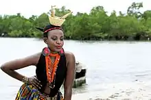 Jeune femme pogoro posant au bord de l'eau