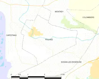 Entouré par les communes de Capestang, Montels et Montady, Poilhes est situé à 12 km au sud-ouest de Béziers la plus grande ville à proximité.