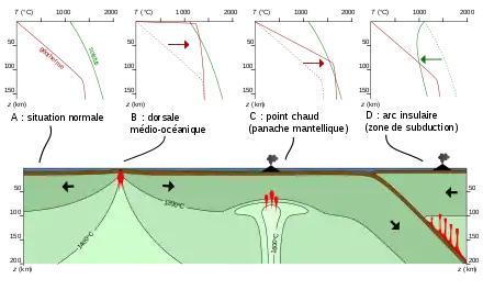 En 2003, Vincent Courtillot et al. proposent l'existence de trois types de points chauds en fonction de l'origine du panache mantellique : les points chauds dits primaires, à panache profond provenant sans doute de la limite inférieure du manteau (îles Hawaï, La Réunion), les points chauds dits secondaires, à panache intermédiaire provenant sans doute du toit de la zone de transition du manteau (îles Canaries, Galapagos), les points chauds dits superficiels liés aux zones de contrainte dans la lithosphère (Açores, Comores)[4].