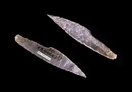 Ce rétrécissement permettait vraisemblablement de la fixer sur un support type hampe pour en faire une pointe de projectile, voire pour permettre un lancer au propulseur. Cependant pour des raisons évidentes de conservation aucun support n'a pu être retrouvé pour certifier un tel usage.