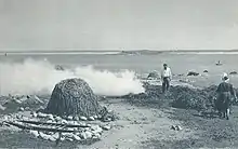 « Pendant les nuits d'hiver, lorsque le vent de tempête pousse les navires à la côte, on rencontre, allant par bandes de six à huit, toujours armés de leurs terribles crocs à goémon, « ceux de la Palud de Tréguennec » ; ils espèrent les épaves humaines le long du Pors-Carn[18], cachés entre les rochers de cette pointe de la Torche (...). C'est là qu'opéraient les naufrageurs dont ces brigands sont les dignes fils. Ils attachaient des lanternes aux cornes de leurs vaches ; la démarche oscillante des animaux faisait prendre aux navigateurs égarés ces falots pour les feux de quelque navire à l'ancre secoué par le roulis. D'autant que la pointe de la Torche s'avance invisible dans l'immense baie d'Audierne et que, doublant le cap de Penmarch, les marins croyaient arriver dans un port sûr où étaient mouillés des bateaux. C'est pourquoi entre la pointe de Pen'march et la pointe de la Torche, la baie s'appelle Pors-Carn, le port à la charogne où, comme ancre de salut, les malheureux, leur navire brisé sur les rochers, trouvaient le croc des pêcheurs de goémon. Au sommet de la pointe de la Torche se voit un corps de garde, aujourd'hui en ruine, élevé pour mettre obstacle à ces brigandages. Aussi les descendants des anciens naufrageurs ont-ils encore fort mauvaise réputation ; s'ils n'allument plus de feux homicides, ils errent toujours la nuit sur la grève du Pors-Carn, et en plein jour il ne fait pas bon de s'aventurer sans un bon fusil dans la Palud de Tréguennec, surtout si l'on a quelque bijou apparent. Il faut se tenir sur ses gardes vis-à-vis de grands gars de vingt ans, qui viennent à vous dans ces solitudes le croc d'une main, tendant l'autre pour demander sans rougir or guennec, un sou. Qui défendra le voyageur égaré dans ce désert ? Il ne faut pas cinq minutes pour creuser dans le sable de la grève une tombe de six pieds, et dans un quart d'heure, la marée montante aura tout nivelé[19] ! »