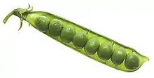 - Pisum sativum L. subsp. sativum var. sativum : petit pois, pois potager ou pois des jardins,