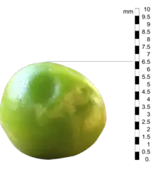 Leur taille est très variable selon les variétés et cultivars. Le poids de 1 000 grains secs peut aller de moins de 150 à 350 g[10].