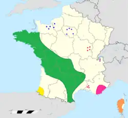 - Le poitevin, dans l'ancienne province du Poitou et une partie de l'Aunis (île de Ré)