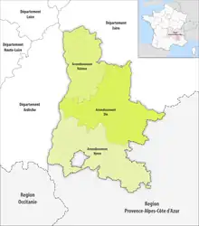 Le département français de la Drôme est un département créé le en application de la loi du , à partir de l'ancienne province du Dauphiné et de quelques communes de Provence. Les 362 actuelles communes, dont presque toutes sont regroupées en intercommunalités, sont organisées en 19 cantons permettant d'élire les conseillers départementaux. La représentation dans les instances régionales est quant à elle assurée par 15 conseillers régionaux. Le département est également découpé en 4 circonscriptions législatives, et est représenté au niveau national par quatre députés et trois sénateurs.