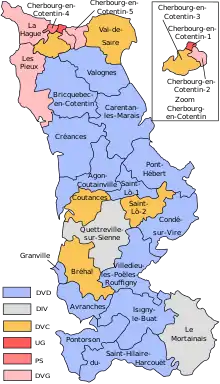 | Cherbourg-en-Cotentin-3 | Marie-Odile Féret | PS | Isabelle Fontaine | LR | ||