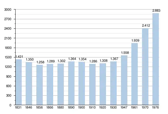 - Sources : INS, Rem. : 1831 jusqu'en 1970 = recensements, 1976 = nombre d'habitants au 31 décembre.