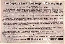 Les territoires de la Biélorussie occidentale, de l'Ukraine occidentale et de la région de Vilnius ont été incorporés à la Pologne en 1921, à l'issue du traité de Riga mettant fin à la guerre polono-soviétique de 1919-1921. Dans le même temps, le gouvernement du nouvel État polonais, sous la pression des Alliés, a accepté d'accorder l'autonomie politique à la Galicie, mais pas à la Volhynie.