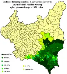 En 1924, le gouvernement du Premier ministre Władysław Grabski a adopté une loi (connue sous le nom de lex Grabski) — ce malgré les objections des représentants parlementaires ukrainiens — créant des écoles bilingues ukrainiennes et polonaises. Il en résulta une baisse rapide du nombre d'écoles ukrainiennes unilingues ainsi qu'une forte augmentation des écoles bilingues polonais-ukrainien en Galice et des écoles polonaises en Volhynie (1 459 en 1938)[78].