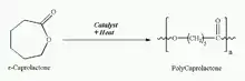 La polycaprolactone (PCL)[1] est un polyester biodégradable comportant une faible température de fusion d'environ 60 °C et une température de transition vitreuse d'environ −60 °C.