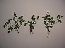 Les feuilles de la subsp. tetraphyllum sont non charnues, ovales-oblongues[8] ; en position médiane, elles sont souvent disposées par 4 aux nœuds, ailleurs par paires opposées. Hauteur : 2 à 20 cm[4].