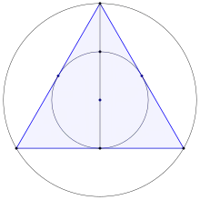 Tout triangle est bicentrique[2]. Dans un triangle, les rayons respectifs r et R du cercle inscrit et du cercle circonscrit sont liés par la relation d'Euler :