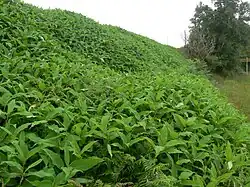 Elle a été introduite en Europe et Amérique comme plante ornementale, et montre localement des capacités à devenir envahissante, voire invasive (par exemple dans l'État de Washington[6]. En expansion récente dans certaines régions, elle est néanmoins beaucoup plus rare que la renouée du Japon.