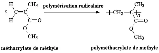 Le poly(méthacrylate de méthyle) (souvent abrégé en PMMA, de l'anglais poly(methyl methacrylate))[9] est un polymère thermoplastique transparent obtenu par polymérisation en chaîne dont le monomère est le méthacrylate de méthyle (MMA). Ce polymère est plus connu sous son premier nom commercial de Plexiglas, marque déposée utilisée dans le langage courant[10] comme antonomase, même si le leader mondial du PMMA est Trinseo après cession par Arkema de l'activité d'Altuglas International. Il est également vendu sous les noms commerciaux Lucite, Crystalite, Hésalite, Perspex et Nudec.